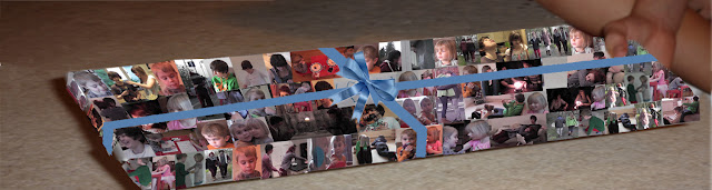 -front cover of digipak-gift wrapping, unwrapped, can sneak a look inside (gift tag)